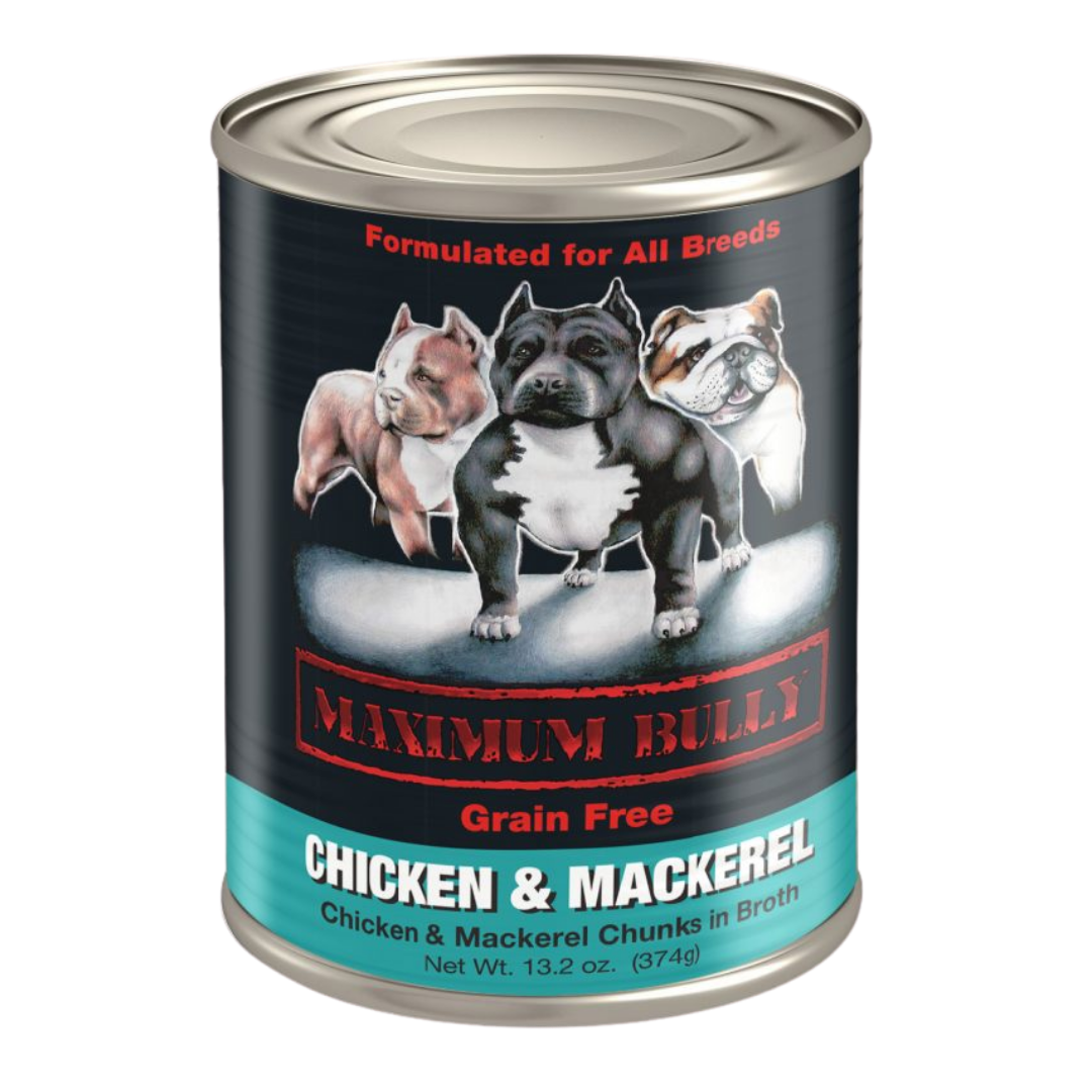 Maximum Bully Chicken & Mackerel Chunks in Broth, Wet Dog Food