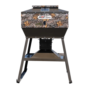 The all-new Corn Pro in Realtree® camouflage by ASF comes with a patent-pending dual-purpose dispersant housing that allows you to time feed in two ways. Using the Eliminator spinner and THE-TIMER, this camo deer feeder disperses either corn or protein at the programmed times. By opening or closing a baffle system on the control unit, the feeder can be set up to either broadcast corn or trough feed protein.