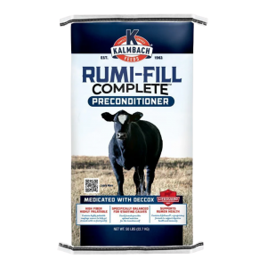 - High Fiber Complete Feed – contains highly palatable roughage sources to get stressed cattle on feed quickly.