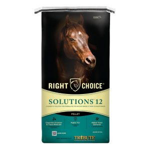 A pelleted horse feed designed for mature horses at work or maintenance.