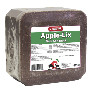 STOCKADEĀ Apple-Lix Deer Salt Block should be self-fed year round in areas frequented by deer such as watering spots, trails and rubs. Blocks may be placed on tree stumps or on the ground.